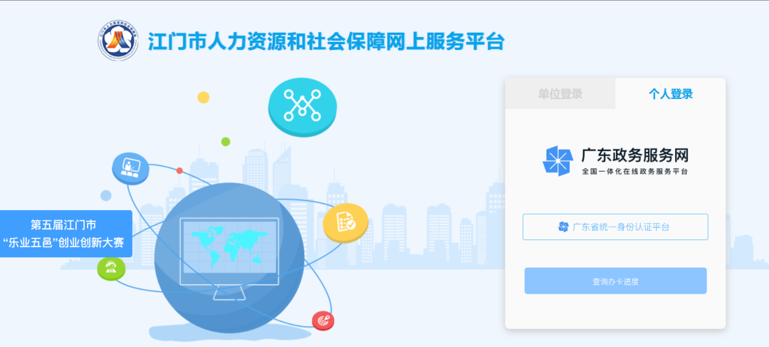 (五)浏览器输入报名网址:https://rsfw.jiangmen.cn/Jmqyfwpt/index.do,进入开云电竞官方网站人力资源和社会保障网上服务平台;