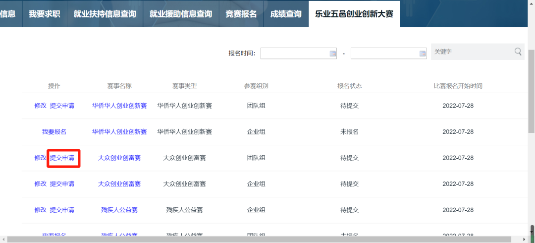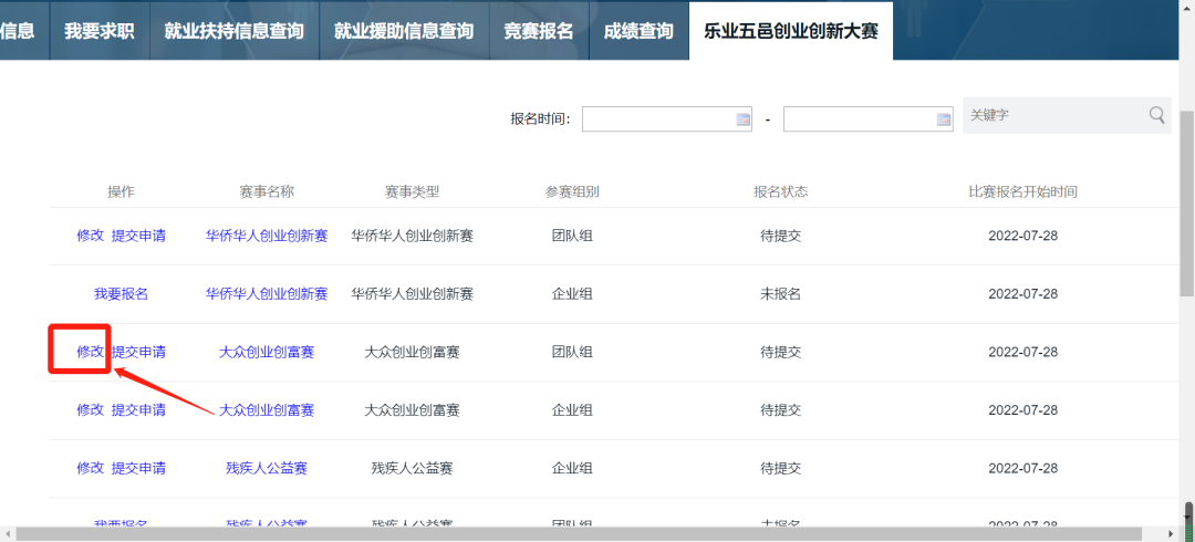 (二)进入第五届开云电竞官方网站“乐业五邑”创业创新大赛官方网站,点击【我要报名】;
