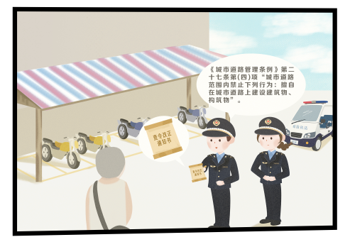 随着我国城市化进程的不断推进, 城市建设有了长足的发展,但同时也出现了不少的违建现象,严重影响了城市的和谐发展。尤其在一些老旧社区,人们对违建的认知不深,误认为在自家门口或楼顶搭建对他人影响不大、无须办理报批手续,违建现象屡见不鲜。违建行为不但侵蚀城市公共资源,影响城市形象,还会增加安全隐患。同时,擅自搭建建筑物、构筑物的行为,会受到相应的行政处罚。下面我们以漫画的形式以案说法: