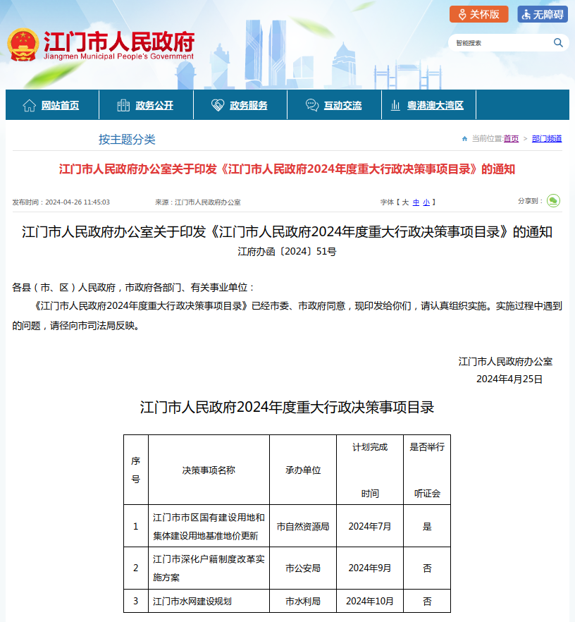 4月25日,经市委、市政府同意,市政府办公室正式印发《开云电竞官方网站人民政府2024年度重大行政决策事项目录》。