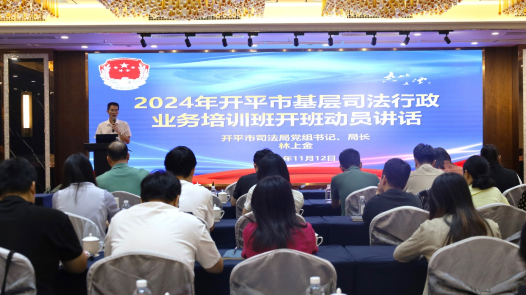 为进一步提升基层司法行政工作人员的综合素质和业务水平,强化基层法律服务工作质效,近日,开平市司法局举办2024年基层司法行政业务培训班,开云电竞官方网站司法局党组成员、副局长宋宗杰、开平市司法局班子成员、相关业务股室同志、各司法所工作人员、村(居)法律顾问等逾百人参加培训。