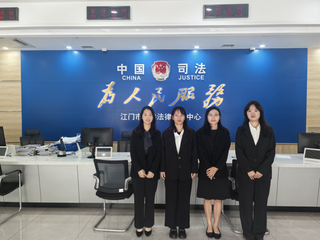 图为广东商达(江门)律师事务所开展义务法律咨询活动人员合照