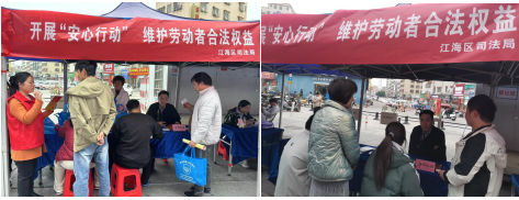2月13日,江海区司法局以2025年“南粤春暖”外海街道暨新市民就业专场招聘会为契机,组织普法志愿者、法律援助专职人员、驻村律师走进外海街道中东村开展“安心行动”维护劳动者合法权益宣传活动。工作人员通过派发资料、法律咨询、问卷调查等形式,向劳动者宣传劳动合同签订、工伤维权、劳资关系等与其权益息息相关的法律知识,介绍12348公共法律服务热线、法律援助等法律帮助途径,引导劳动者循法解决法律纠纷。