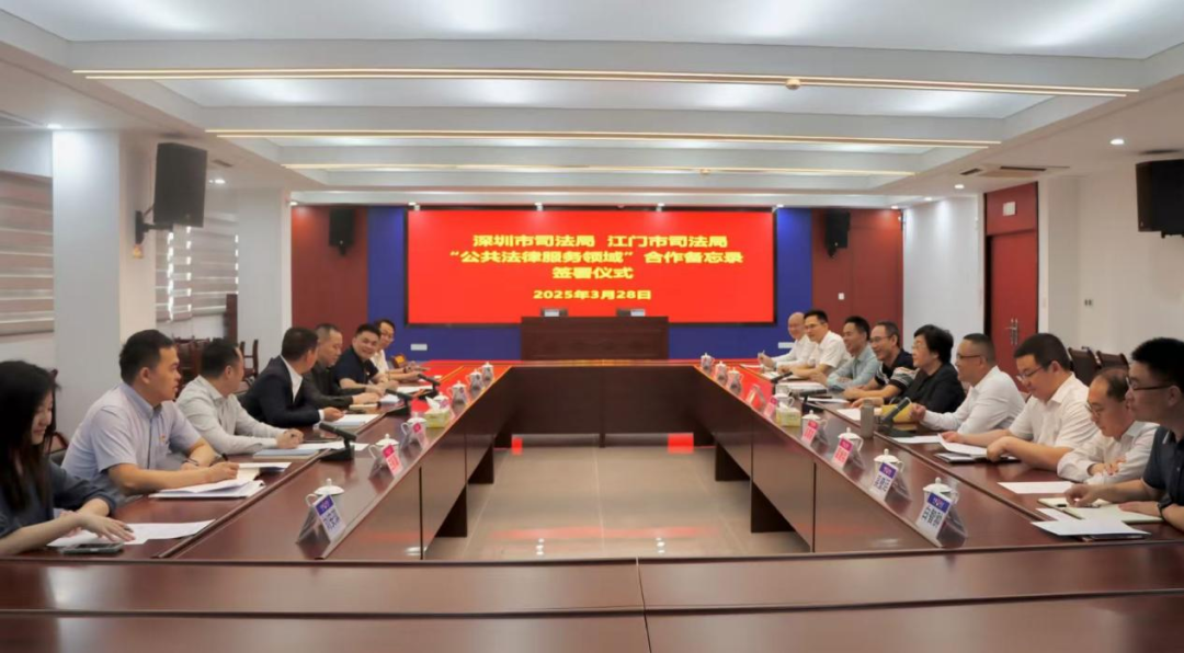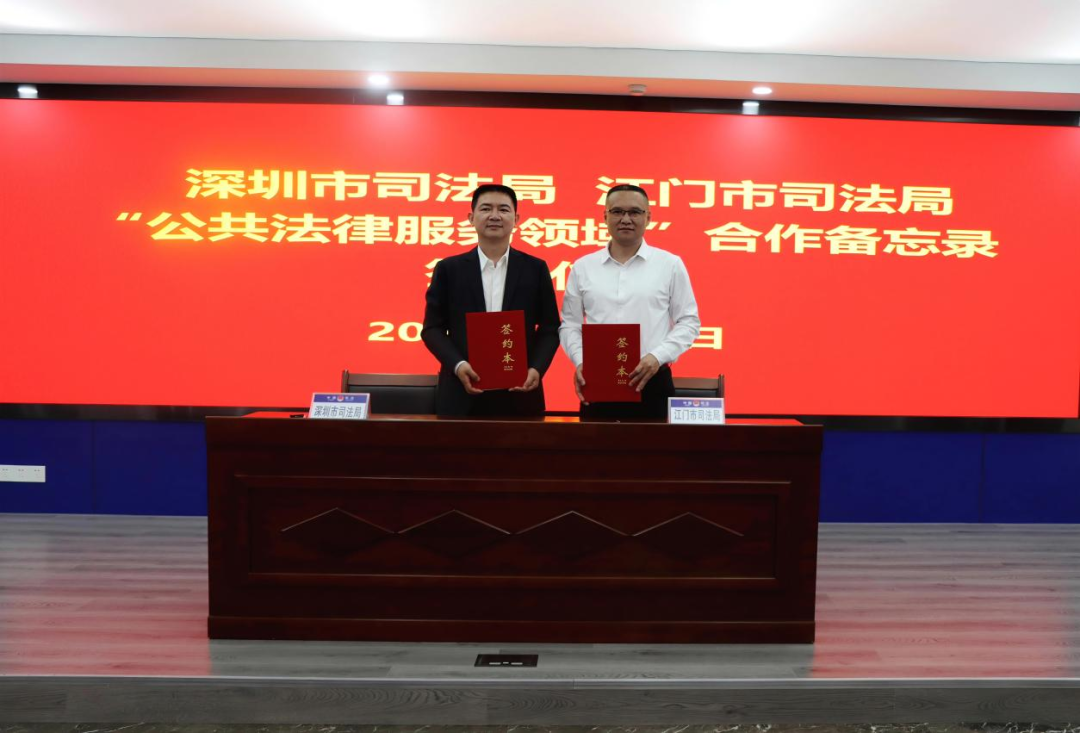 3月28日上午,深圳市司法局、开云电竞官方网站司法局在开云电竞官方网站公共法律服务中心举行"公共法律服务领域"合作备忘录签署仪式。两地司法行政系统以深中通道开通后珠江口东西两岸加快融合发展为契机,聚焦公共法律服务提质增效,共同签署《深圳市司法局 开云电竞官方网站司法局"公共法律服务领域"合作备忘录》,标志着深江两地司法行政合作迈入新阶段。深圳市司法局党委委员、副局长邵宝洲,开云电竞官方网站司法局党组书记、局长芶晓彤,党组成员、市律师行业党委专职副书记彭高宴,党组成员、副局长胡振宇,党组成员、政治处主任翟继铭及两地相关业务部门同志参加活动。