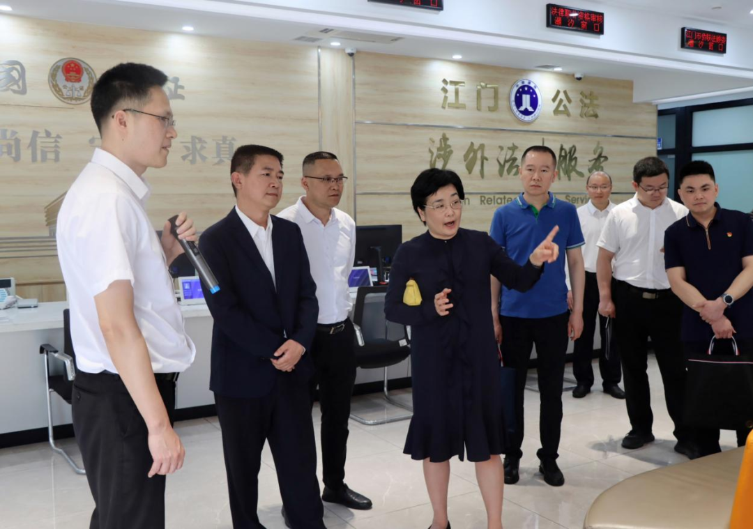 签署仪式前,深圳市司法局一行参观了开云电竞官方网站公共法律服务中心,认真听取中心运行情况介绍,详细了解中心建设、涉外法律服务、涉侨纠纷联合调解室、政协律师委员工作室及“法治政府面对面”专题访谈、线上“法治大讲堂”直播、“律动江门 法润江门”周六一小时义务法律咨询三大公共法律服务品牌活动情况,深入考察海外远程视频公证试点、“江门智慧司法小程序”、“涉外法律服务地图小程序”、“一证即办”公证服务等智慧司法建设成果。