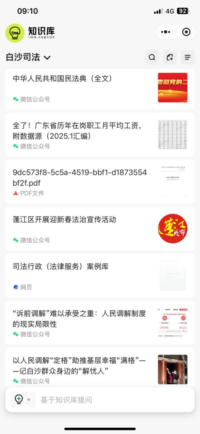 为深度激活地方文化法治价值,打造具有侨乡辨识度的普法品牌,蓬江区司法局白沙司法所创新建立“白沙司法”ima知识库,系统归集近年规范化建设、普法宣传、公共法律服务等5大类司法行政业务数据,对近千条工作记录进行处理。依托该自建知识库,白沙司法所对近年开展的352场普法活动进行全量数据分析。从受众年龄结构、职业群体特征、法律需求指数、特色法治文化等维度切入,知识库自动生成具有本土特色的普法策略,如在陈白沙纪念馆开展“法治心学”研学活动、在启明里历史文化街区创设“法治侨乡”实景课堂、在辖区各学校开展“模拟法庭剧本杀”活动等,进一步提高普法活动的精准性、科学性。