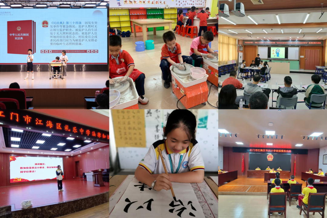 在文艺创作方面,江海区普法办推出反诈情景剧《别想骗我》,江海区税务局创作粤剧折子戏《粤韵颂税宣》等特色剧目,同时还组建了“江海税务乐队”,创作演唱《智税前行》《税圆侨梦》等原创歌曲,并在“广东税务”公众号及腾讯、网易云等主流音乐平台展播。针对青少年群体特点,创新开展沉浸式普法教育,鼓励学生以艺术品创作、话剧、小品、情景剧、模拟法庭等形式,参与法治实践活动,如银泉小学法治文艺护成长、江门一中附属小学“陶然法得”陶艺创作大赛、开云电竞官方网站第一实验学校“校园小法官”、外海中学润普法之笔、第十一中学以“剧”说法等特色活动,让青少年在艺术创作和角色体验中深化法治认知。