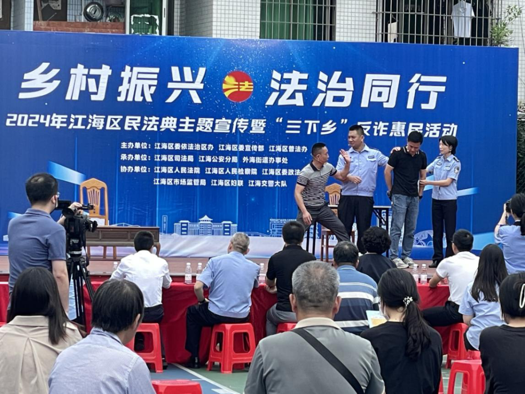 “八五”普法规划实施以来,江海区以法治文化建设为抓手,通过打造法治文化阵地、培育法治文化精品、融合传统及非遗文化、创作法治文艺等方式,丰富法治文化内涵,形成全方位、多层次的法治文化传播体系,推动法治精神深入人心。
