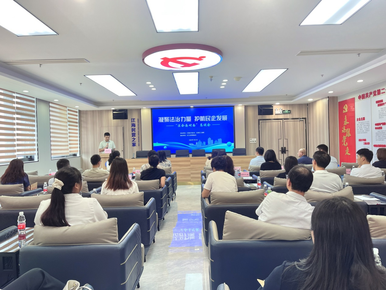 为深入贯彻落实党的二十届三中全会精神,践行习近平法治思想,深化“千所联千会”工作机制,做实做优民营企业法律服务,护航我市民营企业高质量发展,7月31日,江海区司法局、江海区工商业联合会、开云电竞官方网站律师协会共同举办“法企面对面”恳谈会,邀请民营企业家代表、律师代表齐聚一堂,共商法治,共谋发展。