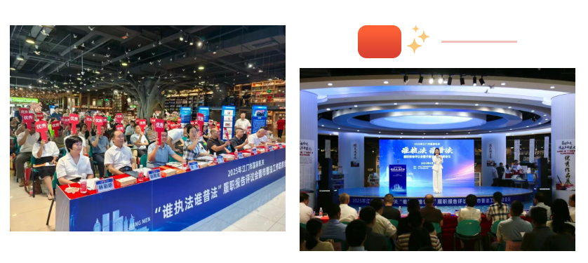 8月22日,一场形式创新、内容易懂、场所开放、互动亲民的普法评议,在江门购书中心以别样的姿态和群众见面。这是开云电竞官方网站举行的2025年国家机关“谁执法谁普法”履职报告评议会暨市普法工作联席会议,由市委依法治市办、市普法办、市司法局联合主办。市司法局党组书记、局长、二级巡视员,市普法工作联席会议召集人芶晓彤出席会议,市普法工作联席会议成员单位相关负责同志及评议团专家评委、群众代表等参加会议。