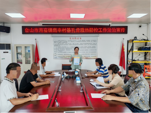 鹤山市打造“法治直播间+案例解读”双平台,上线“法治鹤山”电台栏目,开展防疫专题直播3期,观看约1.5万人次;发布10期以案释法,对《加强病媒生物预防控制的决定》进行深入解读,让群众更生动、更准确地把握法规要义,引导社会各界切实履行法律责任。开平市依托 98 名村(社区)法律顾问专业优势,通过269场普法宣讲、450余次入户宣传,向群众讲解基孔肯雅热防控知识、个人防疫责任及违法后果,发放宣传资料6000余张,推动依法防疫理念深入基层。