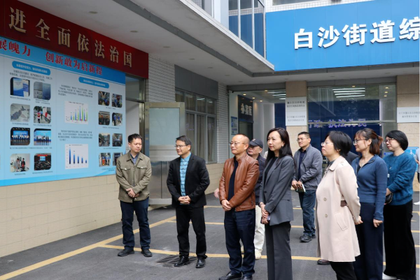 调研组深入蓬江区白沙街道实地调研综合行政执法改革情况,认真听取一线执法队员的介绍,详细了解行政调解室、询问室、法制审核室、听证室等执法办案功能室的设置要求,认真查看规范化建设指引、“导师制”培训等资料。