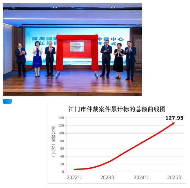 海事仲裁作为解决海事纠纷的重要途径,在定分止争,保障海事相关企业合法权益方面发挥着不可替代的重要作用。市委有部署,司法有行动。市司法局按照全会部署要求,蹄疾步稳推动深国仲江门中心探索开展海事仲裁服务。先是举办AI涉外法务成果暨海事仲裁主题分享会,积极对接深国仲海事仲裁中心。今年7月,深圳国际仲裁院海事仲裁中心江门咨询联络处正式揭牌成立,这是深圳国际仲裁院设立的首个异地咨询联络处,标志着深国仲江门中心在商事、金融、证券三大专业平台后,再次拓展新服务领域。今年首次引入境外仲裁员,包括2名为中国香港仲裁员和1名为中国澳门仲裁员。江门咨询联络处的设立将把深国仲专业的海事仲裁资源以及国际一流的仲裁公信力直接连通到江门,为当地以及周边的涉海企业提供一个家门口的国际化专业化的争议解决服务。作为首个异地咨询联络处,江门咨询联络处的设立将有利于把深国仲海事仲裁资源叠加延伸到江门,助力江门海洋产业健康发展。深国仲江门中心设立前,在2022年受理案件为112件,案件标的额6.22亿元。设立后,深圳国际仲裁院江门中心在2023年办理的案件总计238宗,案件数量同比增长112.5%,标的总额约50.86亿元,标的总额同比增长716.4%;2024年办理的案件总计792宗,标的总额约44.47亿元,案件量同比增长232.8%。