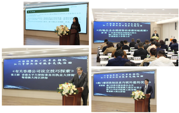 本次交流活动邀请中山大学法学院教授刘瑛、广州商学院法学院执行院长唐犀、香港太平大律师事务所执业大律师张立群、澳门法律交流协进会会长黄景禧等四位专家学者、港澳律师代表分享涉外法治理论和实务经验,四位嘉宾从法律护航企业出海,到在港投资补贴及设立公司技巧分享,再到葡语欧陆法系内外联通优势的深入剖析,聚焦企业出海的核心需求与痛点难点,结合国际形势与国内政策深入剖析了企业出海面临的法律风险与应对策略,详细介绍了在港设立公司技巧、内地企业在港投资的核心补贴政策和澳门葡语欧陆法系在中葡经贸合作、金融服务、文化交流等领域发挥的桥梁纽带作用,每个主题紧扣时代脉搏,分享内容详实、案例生动、见解独到,为企业代表提供了极具参考价值的法律指引。