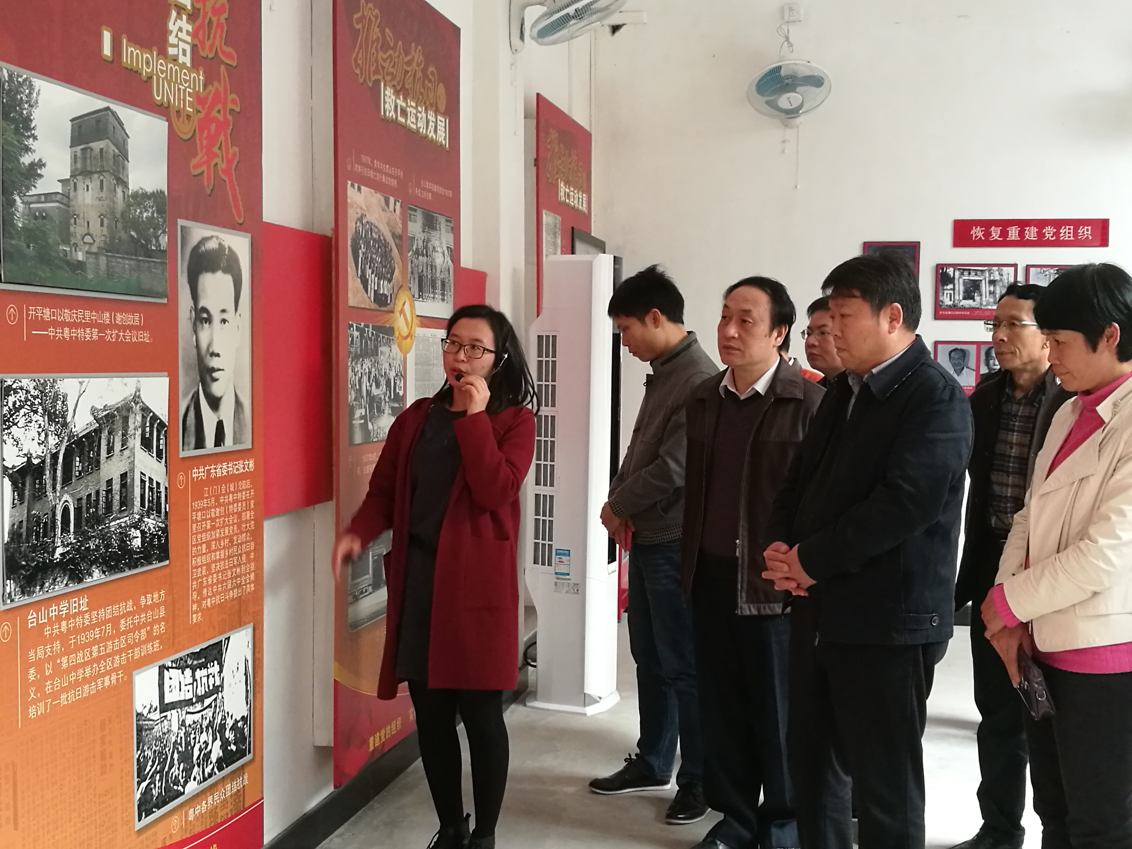 活动期间,党员干部到鹤山市宅梧镇参观了广东人民抗日解放军司令部旧址——宅梧靖村余氏宗祠。余氏宗祠是清代建筑,目前作为广东省中共党史教育基地,重点展示了抗日战争时期,广东人民抗日解放军在鹤山宅梧成立、发展,以及开展革命斗争的光辉历程。