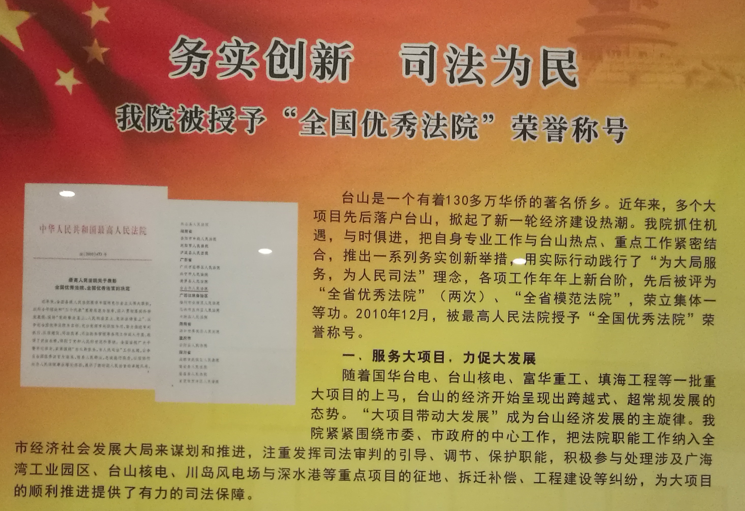 最后在开云电竞官方网站中级人民法院党组副书记孙超和台山市人民法院谢院长的引领下,同志们参观了台山市法院的院史馆和法治教育基地,听取法院的建设情况和党组工作情况汇报。台山市人民法院曾被评为全省优秀法院、模范法院,2011年获“全国模范法院”表彰,他们在维护社会主义法制和社会秩序,保护公民的合法财产和权利,保障社会主义建设事业的顺利进行做出了突出的贡献,在党建工作中也取得了显著的成绩。