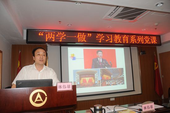 林伟雄同志从一个“中国梦”、两个“敢于”、三个“长期坚持、永不动摇”、四个“自信”、五个“反对”、七提“理想信念”、八位党和国家领导人、十次“不忘初心”(八个坚持)等八个方面,对讲话的重要内容进行了高度浓缩和全面阐述,并结合中央党校韩庆祥教授提出的我们党面临四大考验、四种危险、八项斗争的观点对讲话精神进行了深入解读。他指出,“七一”讲话中十次强调“不忘初心、继续前进”是党中央面对未来、面对挑战进行的全党总动员。我们要结合实际,狠抓落实,把坚定理想信念、坚定正确的政治方向放到首位,进一步增强政治意识、大局意识、核心意识和看齐意识,增强中国特色社会主义道路自信、理论自信、制度自信、文化自信,不忘初心、继续前进,认真履行党和国家赋予的审计监督职责,为全面深化改革,推进稳定发展,实现“两个一百年”奋斗目标贡献应用的力量。同时他对开展纪律教育学习月活动进行了动员部署,要求严格按照上级有关部署和要求,紧紧围绕“学党章强党性、讲规矩守纪律”这一主题,强化党员干部党性宗旨、党规党纪、优良作风和保密纪律教育,为审计工作创新发展提供强有力的纪律保障。