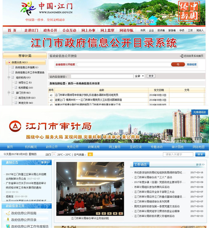 我局主要通过门户网站、政府信息公开目录系统、党务开云体育官网登入入口栏、政务微博、微信、审计年鉴等方式,及时主动公开本部门机构职能、工作动态、审计结果、部门预决算和“三公”经费、人事信息、政策法规等信息。