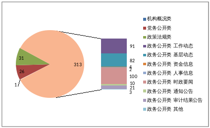 2018年,在局门户网站发布政府信息421条,主要包括开云体育官网登入入口类信息313条,党务公开类信息26条,政策法规类信息31条,专题专栏发布9条,审计园地专栏发布37条。其中开云体育官网登入入口类信息有工作动态91条、基层动态82条、资金信息4条、人事信息2条、时政要闻类信息100条、通知公告10条,审计结果公告21条,其他信息3条。