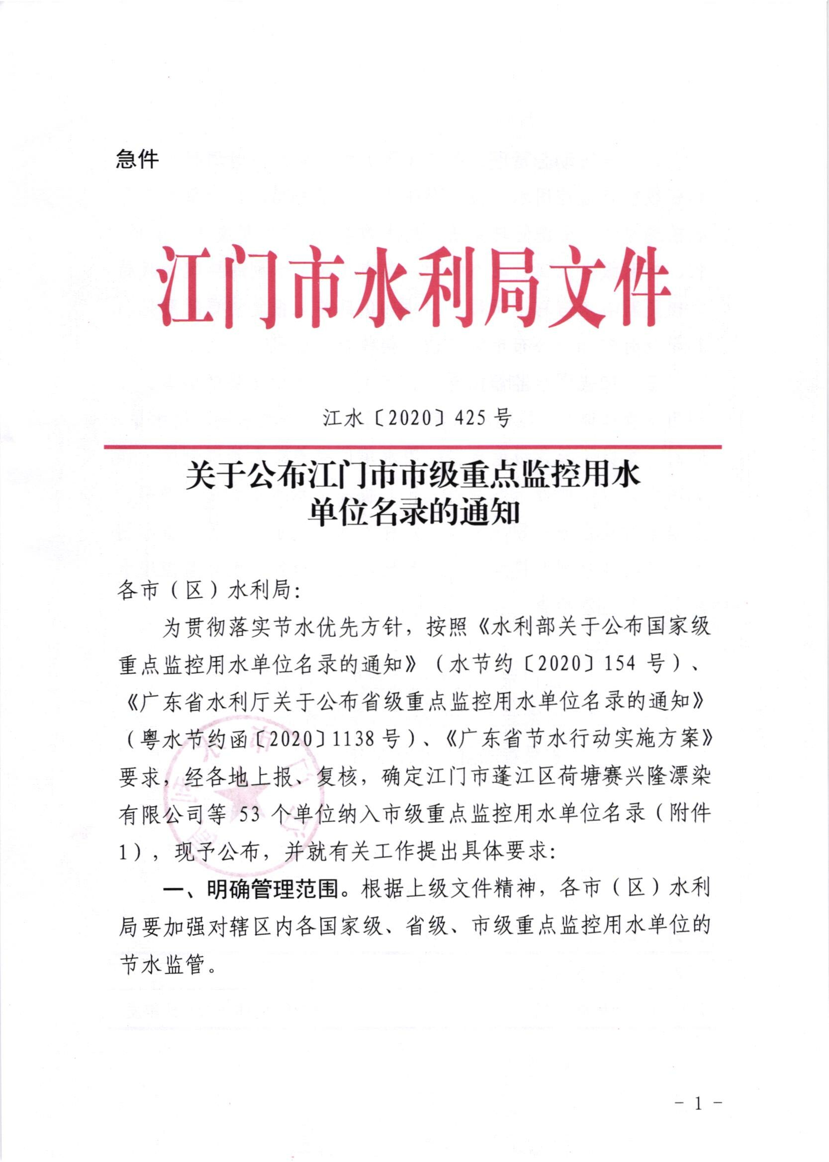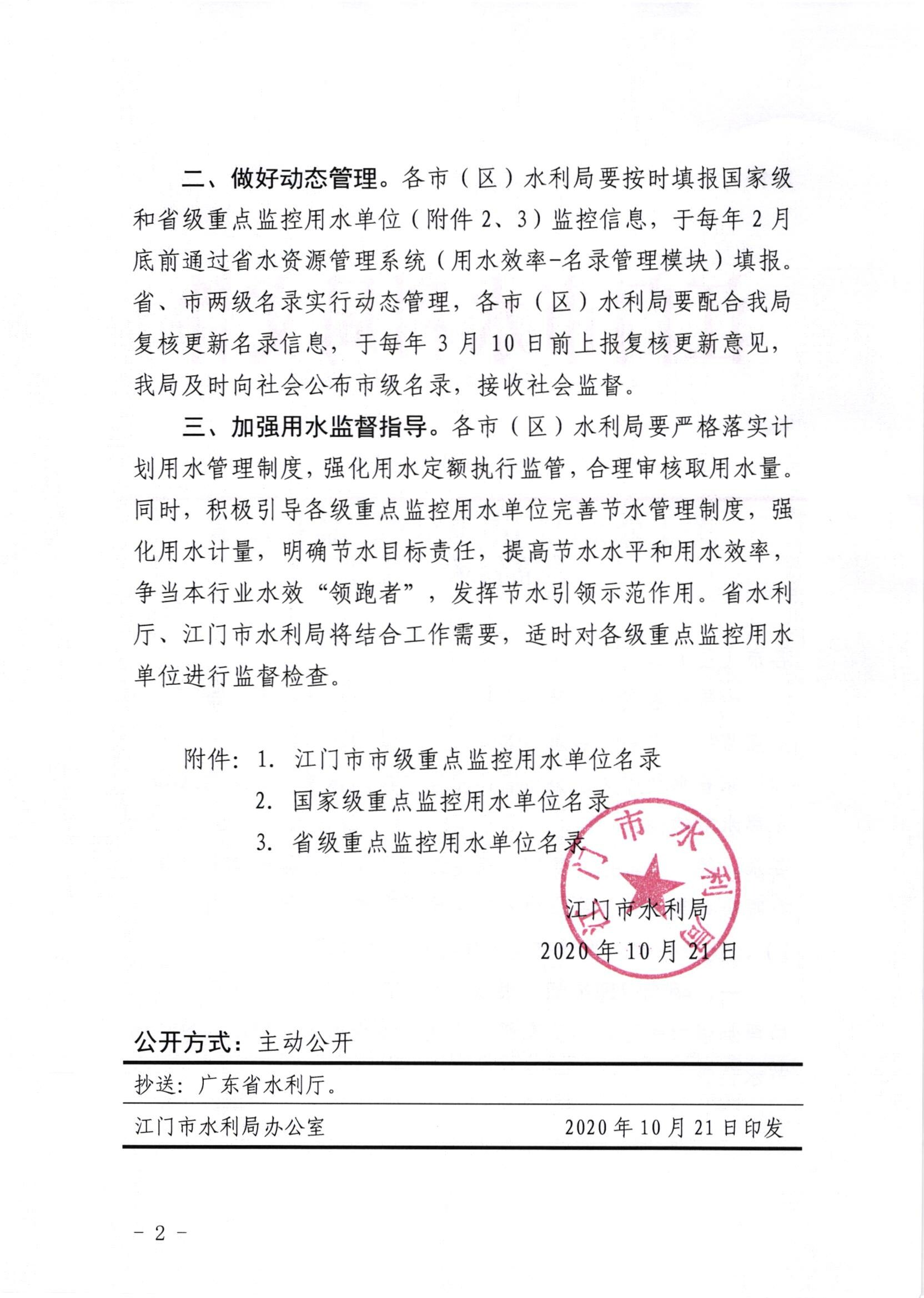 关于公布开云电竞官方网站市级重点监控用水名录的通知