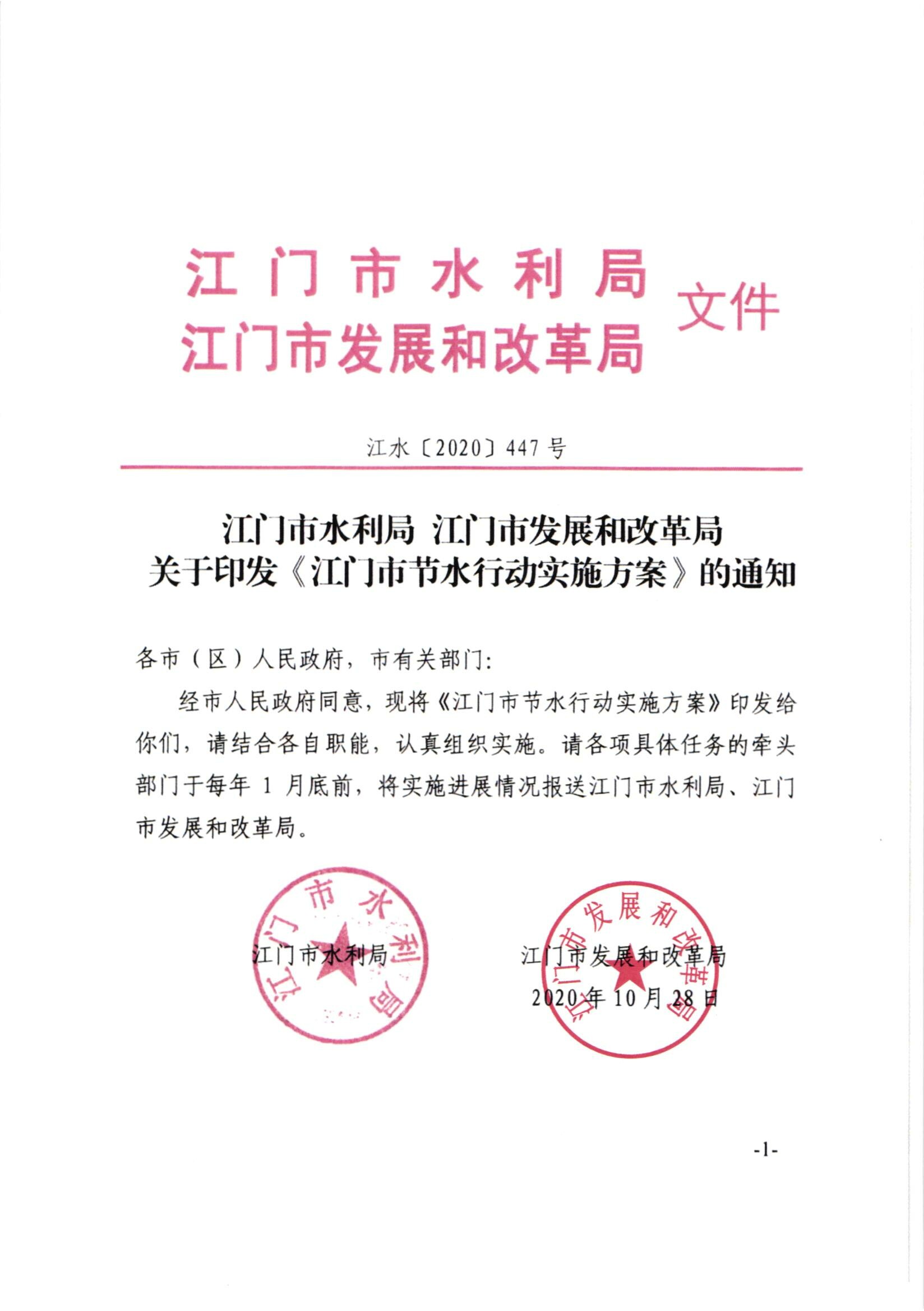 开云电竞官方网站水利局 开云电竞官方网站发展和改革局 关于印发《开云电竞官方网站节水行动实施方案》的通知
