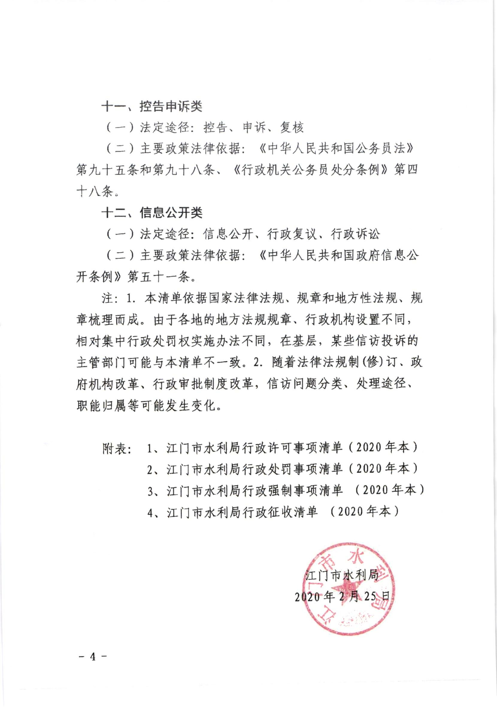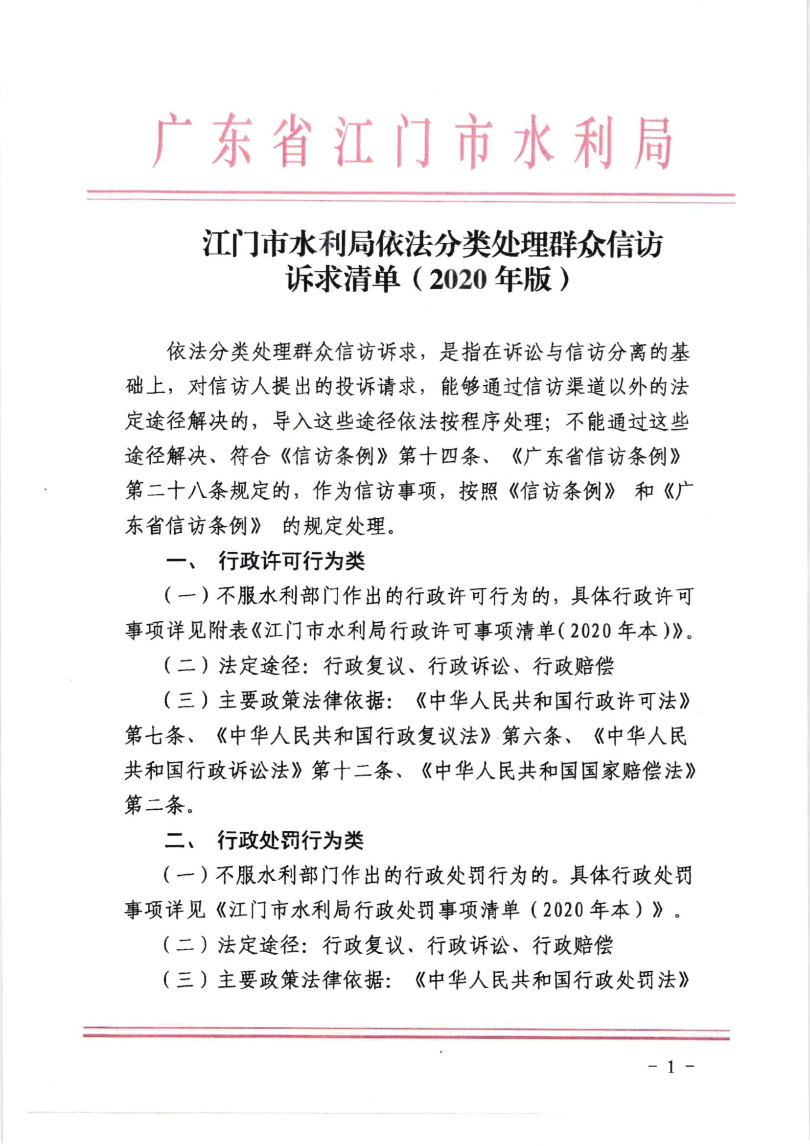 开云电竞官方网站水利局依法分类处理群众信访诉求清单(2020年版)