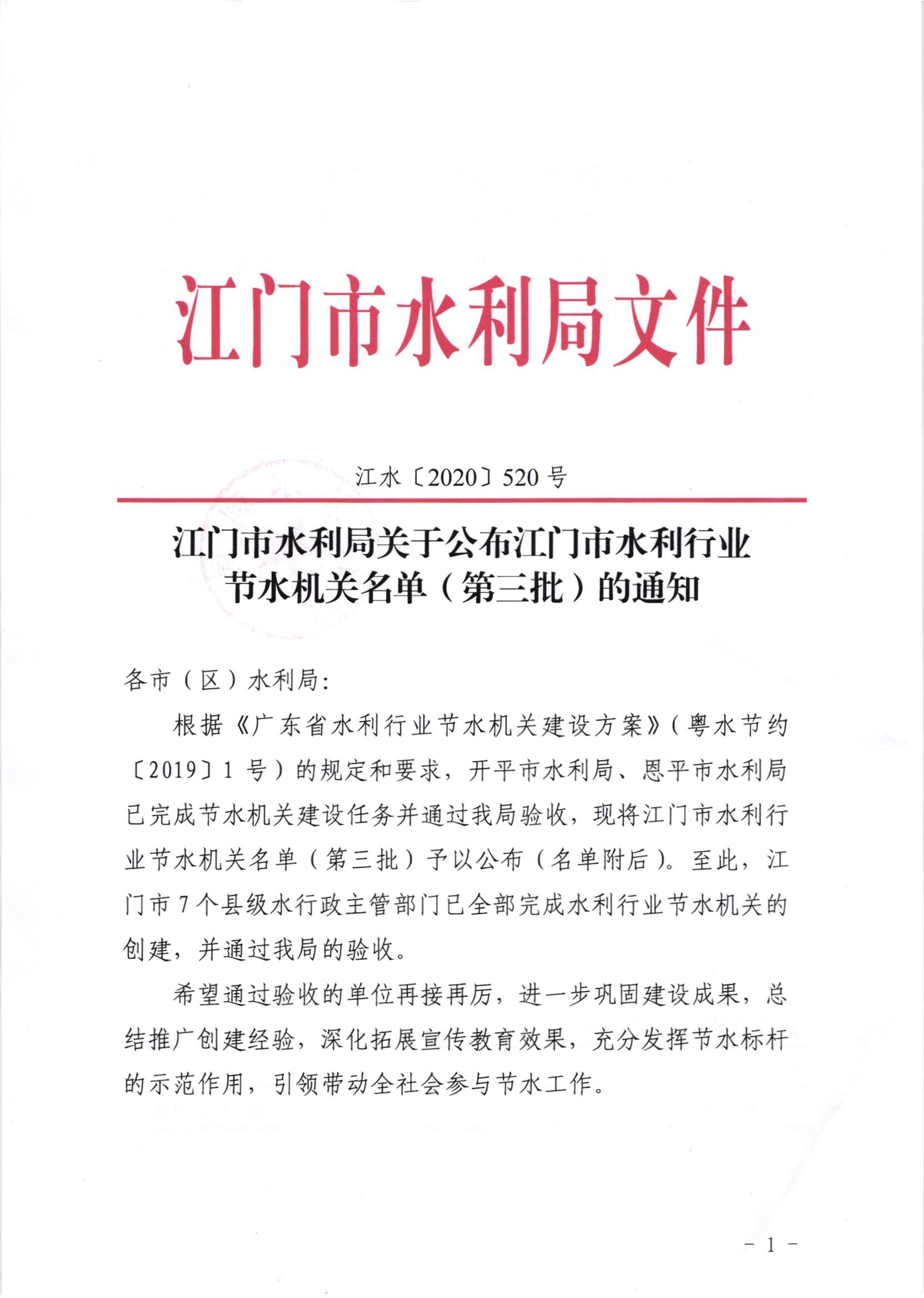附件3:开云电竞官方网站水利局关于公布开云电竞官方网站水利行业节水机关名单(第二批)的通知(江水〔2020〕482号).pdf