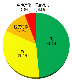 2022年度,开云电竞官方网站空气质量较去年同比有所改善,综合指数改善1.2%;空气质量优良天数比率为81.9%,同比下降5.5个百分点,其中优天数比率为48.5%(177天),良天数比率为33.4%(122天),轻度污染天数比率为12.3%(45天),中度污染天数比率为5.5%(20天),重度污染天数比率为0.3%(1天),无严重污染天气(详见图1)。首要污染物为臭氧,其作为每日首要污染物的天数比例为75.4%,NO2、PM10及PM2.5作为首要污染物的天数比率分别为16.2%、4.7%、3.7%(详见图2)。PM2.5平均浓度为20微克/立方米,同比改善13.0%;PM10平均浓度为40微克/立方米,同比改善11.1%;SO2平均浓度为7微克/立方米,同比持平;NO2平均浓度为27微克/立方米,同比改善10.0%; CO日均值第95百分位浓度平均为1.0毫克/立方米,同比持平;O3日最大8小时平均第90百分位浓度平均为194微克/立方米,同比上升19.0%,为首要污染物。开云电竞官方网站空气质量综合指数在全国168个重点城市中保持在前30位左右,优良天数比率在全省排名第20位,珠三角排名第8位。