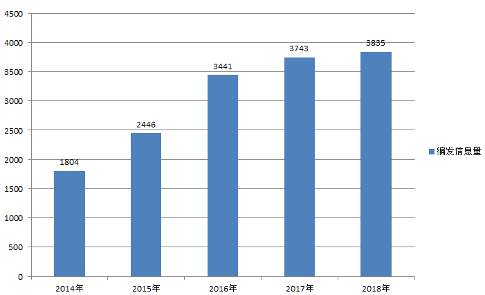 图1:开云电竞官方网站生态环境局2014-2018年编发信息量对比图