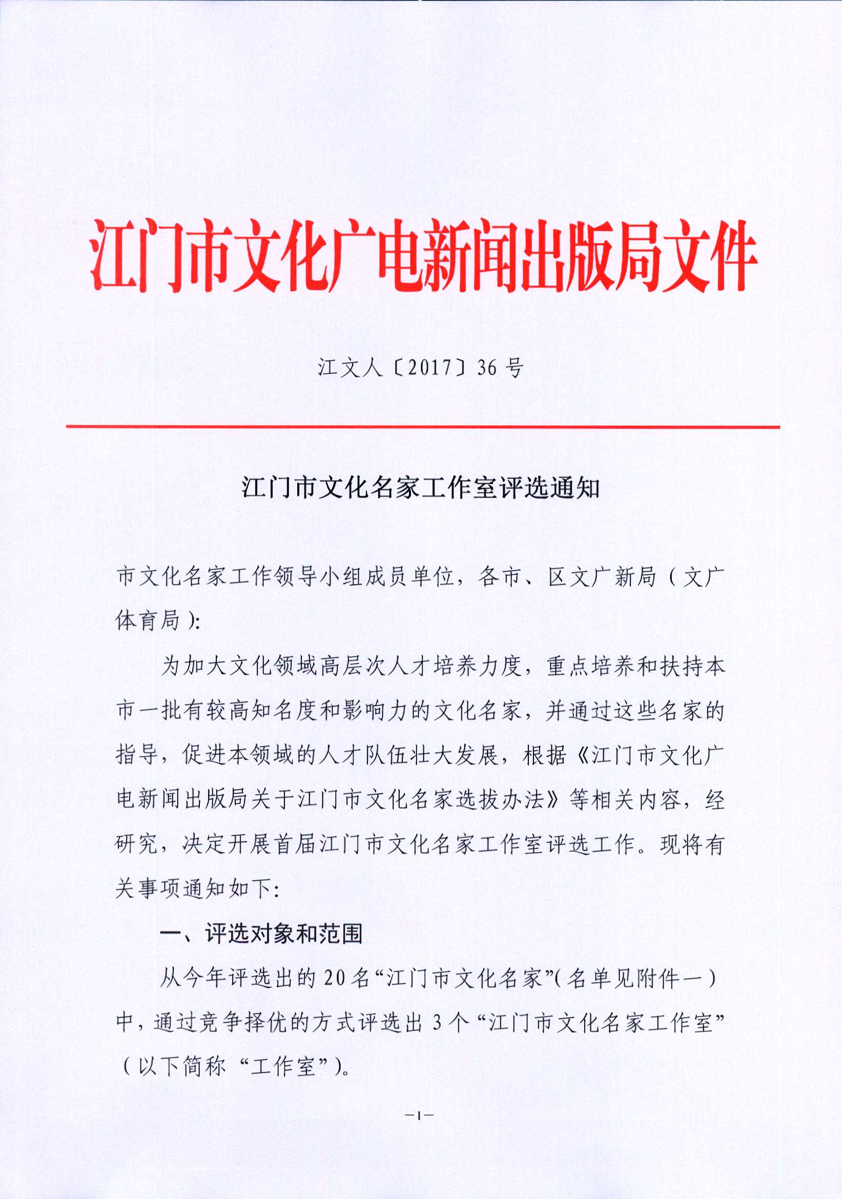 【文件】开云电竞官方网站文化名家工作室评选通知(江文人〔2017〕36号)
