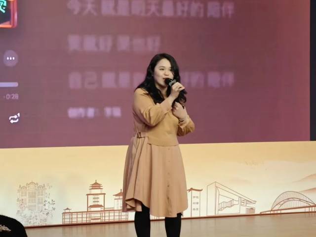 随后是报刊部图书管理员的英文朗诵《与书为伴》,他用流畅的英语讲述着与书为伴的温馨故事,传递着阅读带来的力量与温暖。最后是借阅部全体职工朗诵《我爱上班》,热情洋溢,轻松诙谐的表演,展现了图书馆职工对工作的热爱与执着,更传递了积极向上,奋发有为的精神。