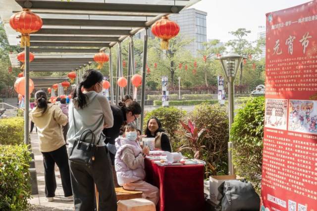 活动现场的习俗展架也吸引了大家的目光。展示内容从元宵节的起源讲起,介绍了不同地区节日习俗,展示了美术作品中对元宵节场景的生动描绘,如古代画作中的花灯盛景、现代艺术作品对节日氛围的创意表达等。市民游客在欣赏展架内容的同时,还参与了鱼灯涂鸦活动,亲手绘制自己心中的元宵盛景。
