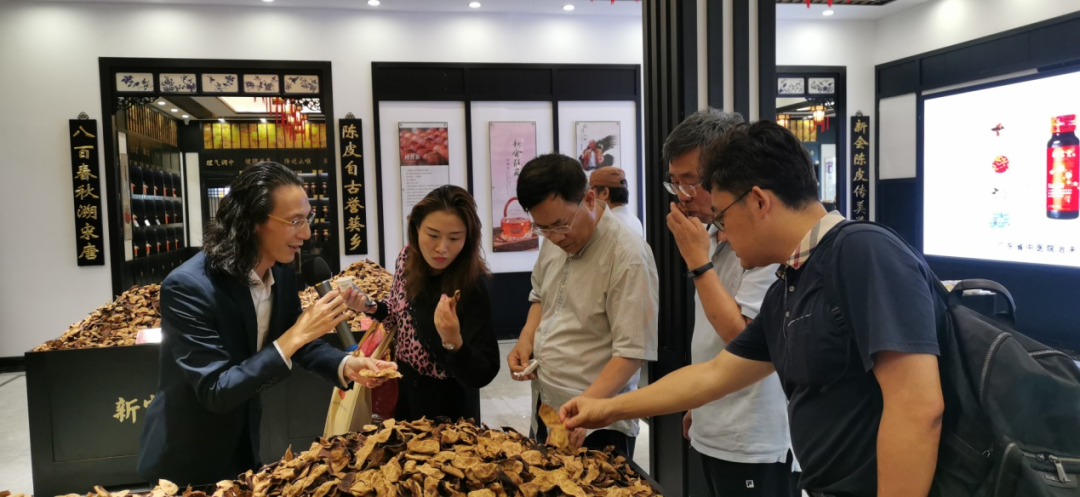 陈柏忠(左一)介绍新会陈皮炮制技艺