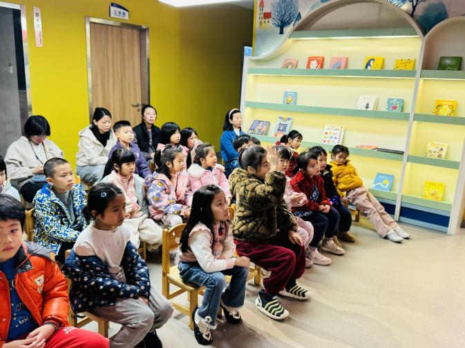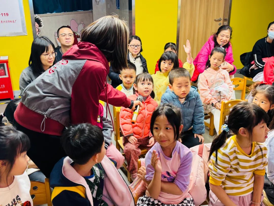 在讲解过程中,文化志愿者老师巧妙地设置了许多互动环节,邀请孩子们举手发言,猜测下一个情节会对应哪种气象。孩子们纷纷积极响应,小手如林般举起,稚嫩的声音充满自信地表达着自己的想法。有的孩子凭借敏锐的观察力,精准地说出答案,赢得了全场的掌声;有的孩子则给出充满创意的回答,虽然与答案稍有偏差,却也展现出了天马行空的想象力,让大家忍俊不禁。家长们也全身心投入其中,他们微笑着鼓励孩子勇敢表达,与孩子们一同沉浸在绘本营造的欢乐氛围里,亲子之间的情感在互动中悄然升温。