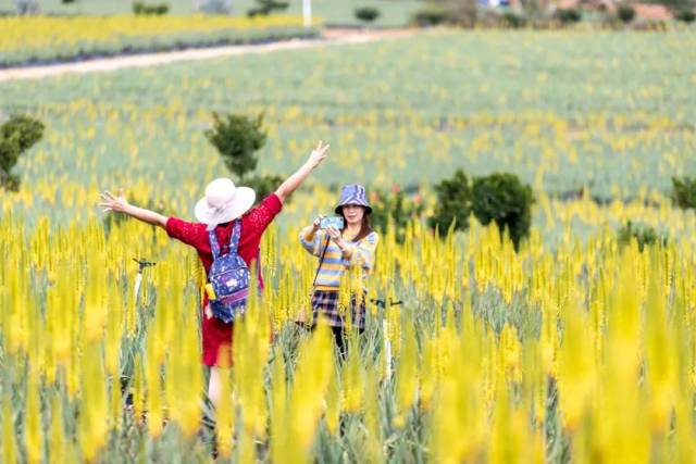 在台山市四九镇东冠村的瑷露德玛芦荟庄园,上千亩芦荟迎来了一年一度的花期。百万朵芦荟花穗如倒挂的琉璃风铃,在美式木屋与荷兰风车间摇曳生姿。游客们手提花篮穿梭花径,刚拍完“ins风”(年轻风格)大片,又被芦荟宴的清新俘获——冰镇芦荟冻沁人心脾,芦荟面膜体验区飘来天然草本香。“赏花+美食+美肤”的全感官体验,让这座庄园热闹非凡。清明小长假,在芦荟庄园入口处的停车场,停满了广州、深圳、湛江、佛山、茂名、江门等地车牌的小轿车,游客们迫不及待地走进芦荟田里赏花、拍照。