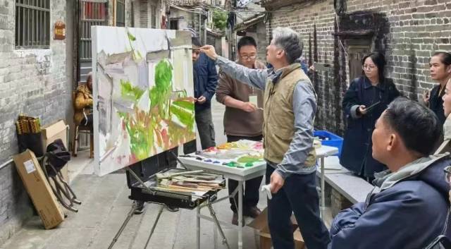 时间回溯到2024年12月,该活动采取“现场写生+艺术沙龙+名家分享+写生研学+作品联展”的形式展开。在中国美术家协会主席范迪安带领下,国内美术界的名家“大咖”在江门开展为期一周的采风写生,他们走进侨乡大地的青砖瓦巷间、碉楼村落处、银湖海岸边捕捉创作灵感,用画笔对话这片热土,创作了近200幅油画作品。