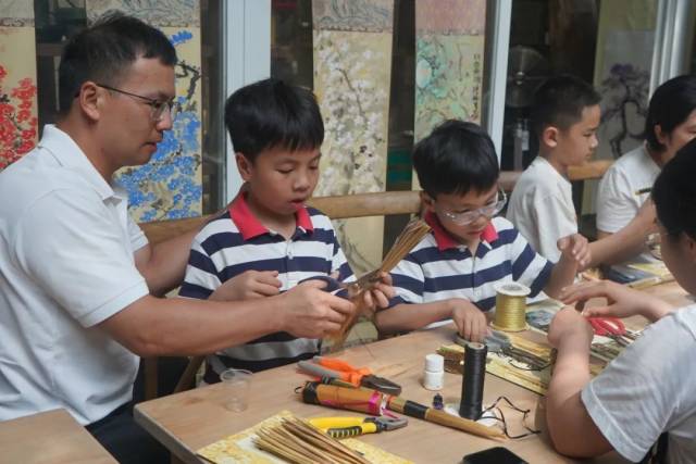 活动伊始,张瑞亨老师向学员介绍了国家级非遗项目白沙茅龙笔制作技艺的历史文化渊源和发展现状,现场示范讲解了18道制笔工序,每位学员都通过剪、锤、捆、缠、刮等手法做出了一支独属于自己的茅龙笔,过程认真投入,收获满满。