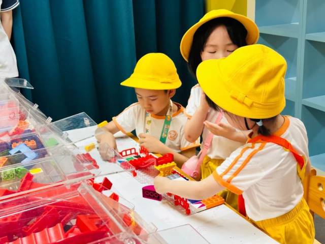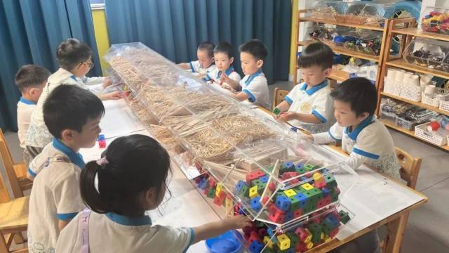 小朋友在使用功能区玩具进行创作
