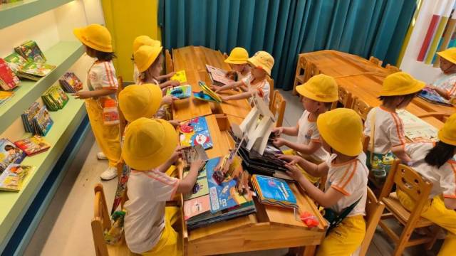 小朋友们在参观和体验绘本阅读区