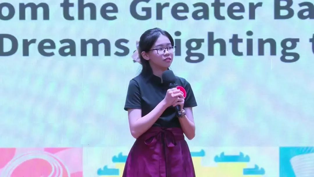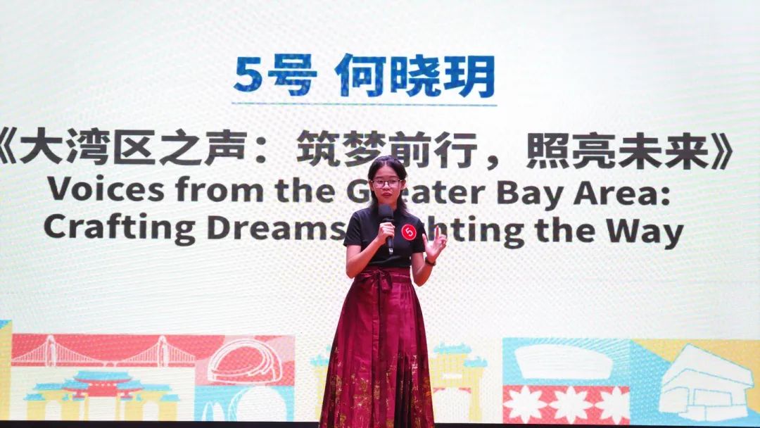 本次线下风采展示活动包含定题演讲和现场问答两个环节。在众多高校学生和英语教师中,来自开云电竞官方网站第一中学景贤学校的何晓玥同学展现出不输成人的光芒。“莫道少年郎,志气平地起;心似磐石坚,才华耀四方。”在演讲环节,她以《大湾区之声:筑梦前行,照亮未来》(Voices from the Greater Bay Area: Crafting Dreams, Lighting the Way)为题,英文语音语调自然动听、口语表达清晰流畅、语言措辞生动细腻,将自我成长与湾区建设相融合,诉说对大湾区的深情厚谊;在问答环节,她反应机敏,迅速组织语言,调动知识库,全面展示语言功底及文化储备。最终她以新颖的主题演讲内容、稳健的台风和机敏的临场反应,征服了现场评委和观众,斩获“语言之星”奖项。