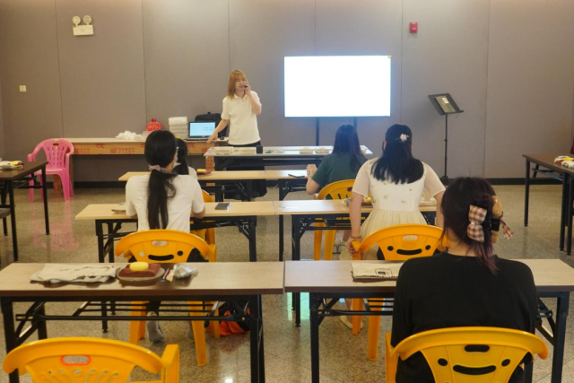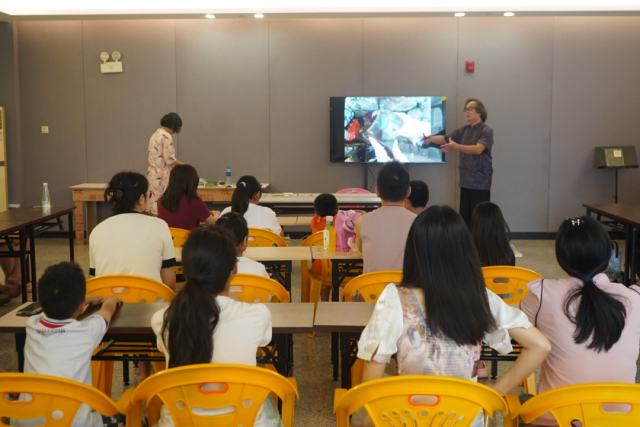 在中山古建筑陶塑瓦脊制作技艺体验课现场,何晓桦老师及助理梁老师其深入浅出地介绍了小榄非遗项目“古建筑陶塑瓦脊制作技艺”的传承背景、发展历程和文化内涵,并现场示范创作陶艺作品和传授制陶技艺。学员们跟随传承人分步操作:将特质陶土揉捻成细腻泥团,用竹刀在坯体上雕刻出卷草纹的起伏肌理,再以模具压印出瓦当的云纹轮廓。泥土是一种拥有造物般神奇魔法的天然材料,现场参与者在平凡的陶泥中发挥天马行空的想象力,通过一双双巧手打造,制出了一件件富有自己思想感情的半成品。
