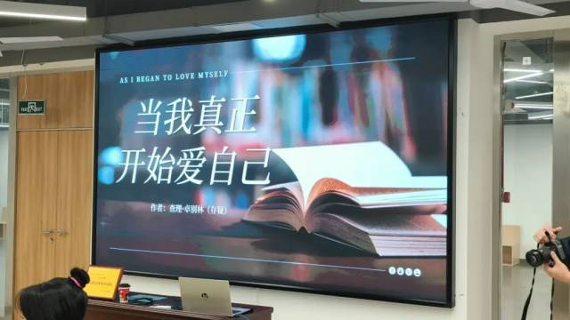 三点三精彩阅读之旅开始,青春洋溢的汪律师分享了诗歌名篇《当我真正开始爱自己》。他中英文的深情朗诵,真挚的情感直击人心,感染了所有人。他从诗中深入剖析了“接纳自己,真正的热爱自己”这一主题,现场观众仿佛被一股温暖的力量包围,纯真而深刻的思考如同一束光,照亮了每个人内心深处对自我的认知,为整场读书会奠定了温暖而治愈的基调。