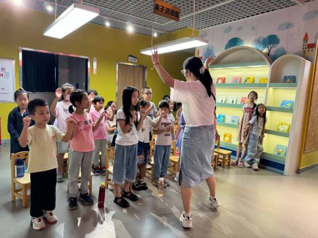 活动伊始,“请你跟我这样做”暖场游戏迅速活跃现场气氛。在志愿者老师的示范下,一起做动作,时而仰头,时而蹲下。孩子们清脆的笑声与家长们温暖的笑容交织在一起,让整个空间都洋溢着欢乐的气息。