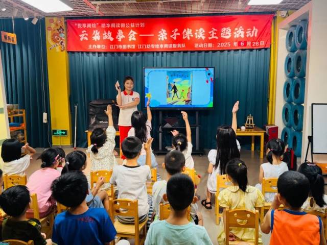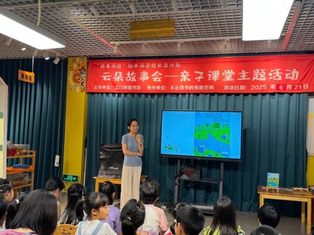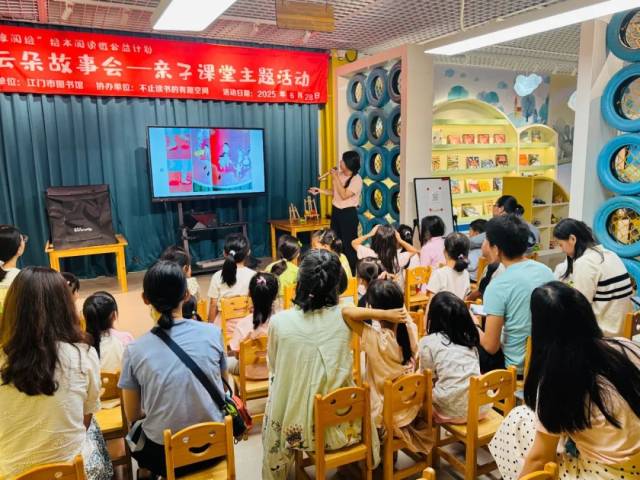文化志愿者老师以生动活泼的语言,拉开了故事会的序幕。随着《水先生的奇幻旅程》绘本缓缓展开,水先生的形象跃然纸上。它一会儿变成雨滴从天空落下,一会儿化作水蒸气在阳光下升腾,一会儿又结成晶莹的冰块。孩子们睁着好奇的大眼睛,紧紧盯着绘本,被水先生在自然界中的奇妙变化深深吸引,时不时发出惊叹声。家长们也沉浸其中,脸上洋溢着温暖的笑容,和孩子一起走进水先生的世界。