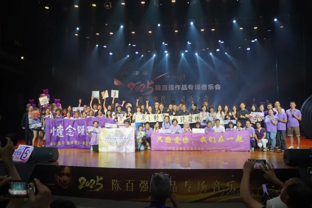 晚会现场歌手与歌迷合照(所展示的黑胶唱片多为陈荣亲藏品)