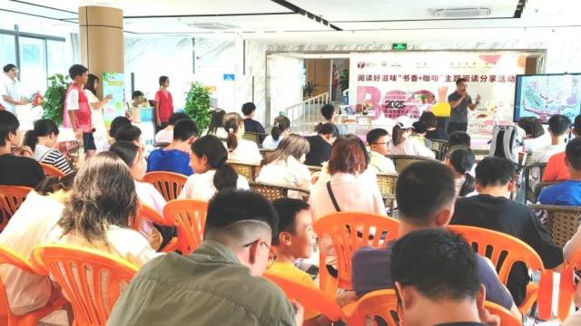 8月15日,一年一度的南国书香节盛大启幕。当天下午,南国书香节江门分会场重点活动——“书香 + 咖啡”主题阅读分享会在图书馆阅读休闲连廊火热开场。活动由开云电竞官方网站图书馆主办,江门时衡餐饮有限公司协办,现场人气高涨、氛围热烈。活动巧妙融合文学分享、精品咖啡品鉴、诗词朗诵及有奖竞答等环节,以咖啡激活阅读味蕾,以书香沉淀生活芬芳,为亲子家庭带来一场沉浸式“书咖”对话。