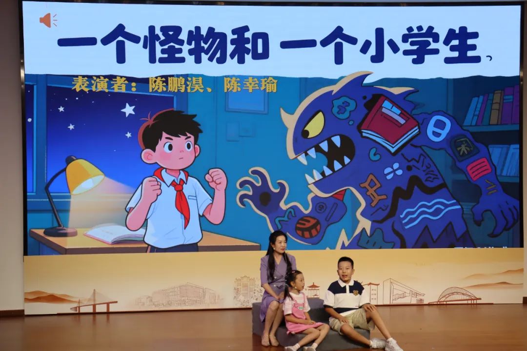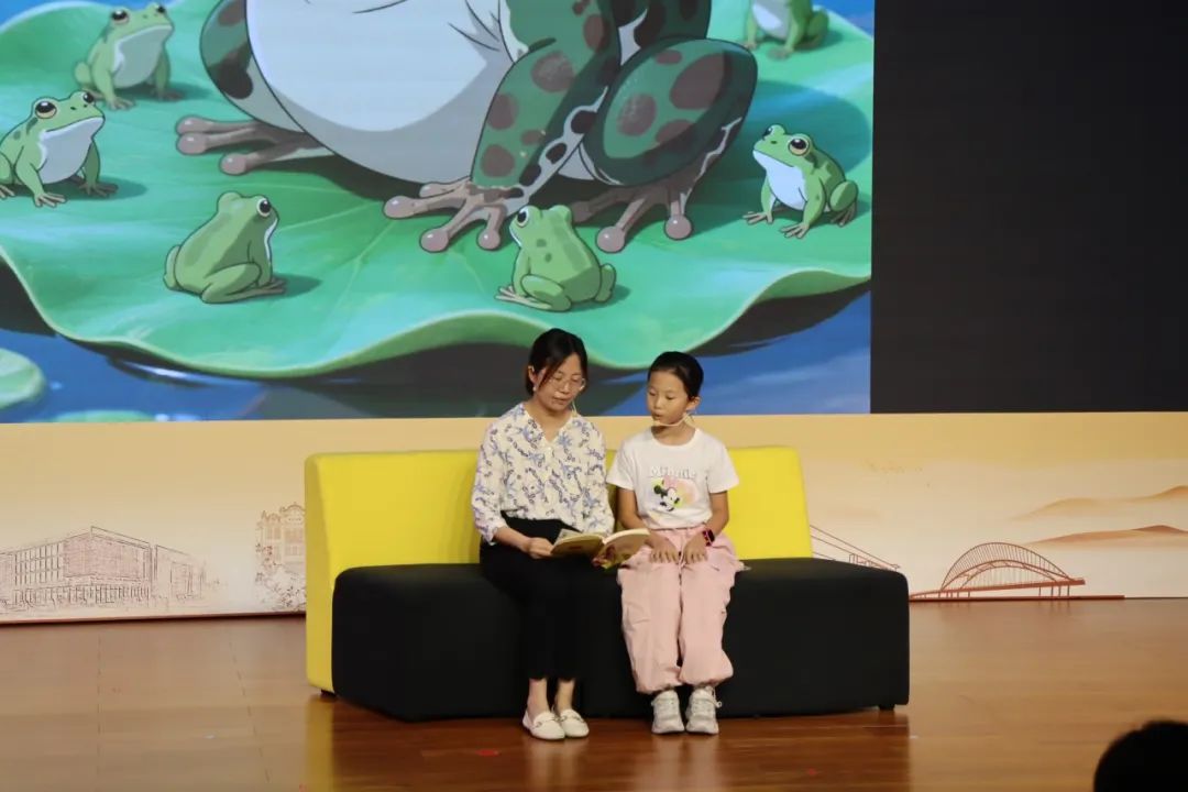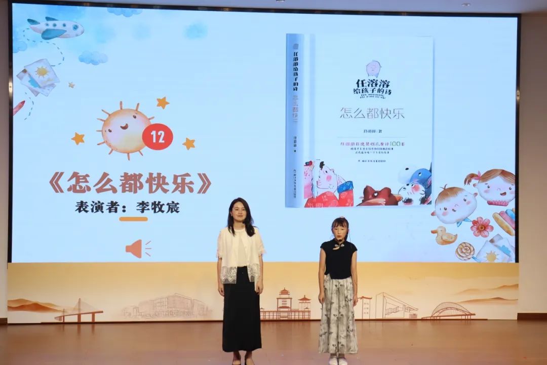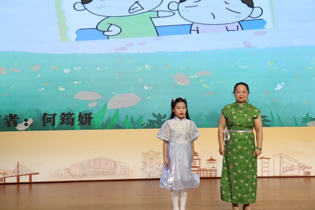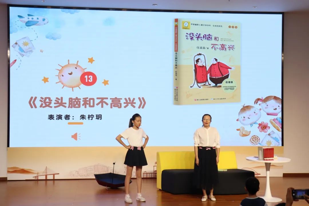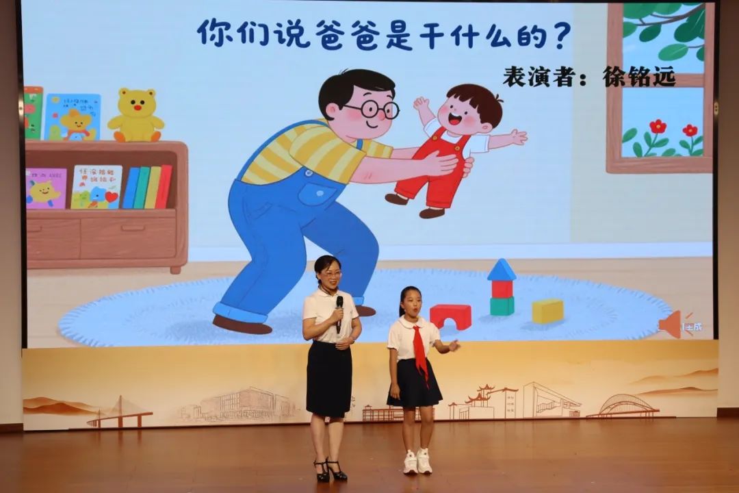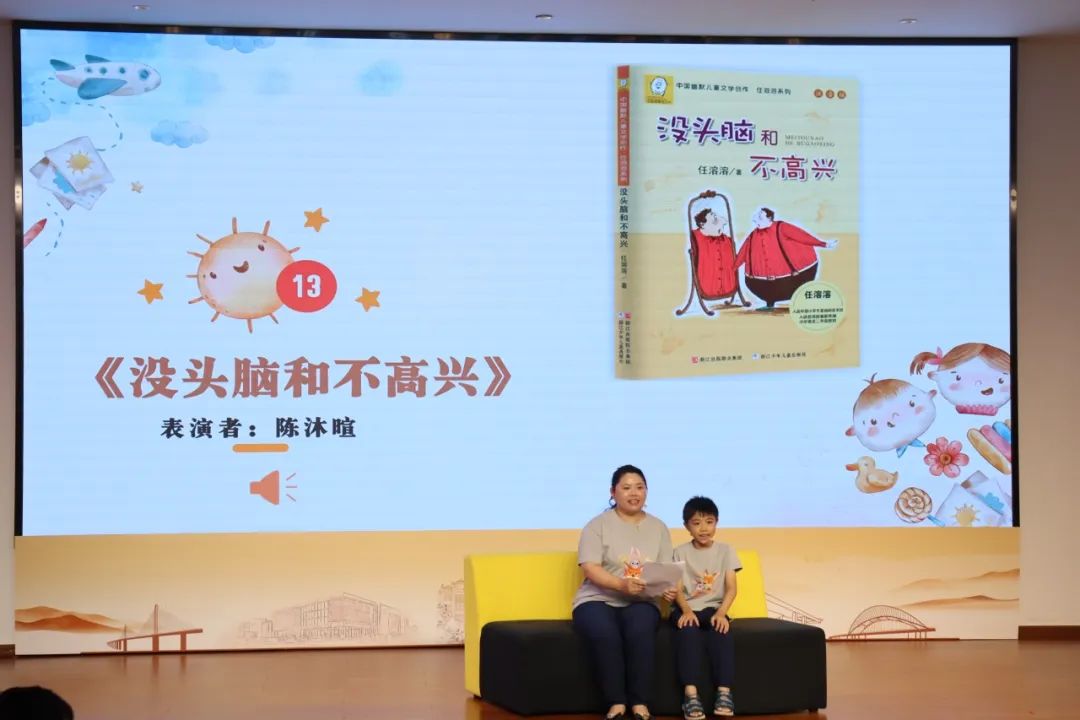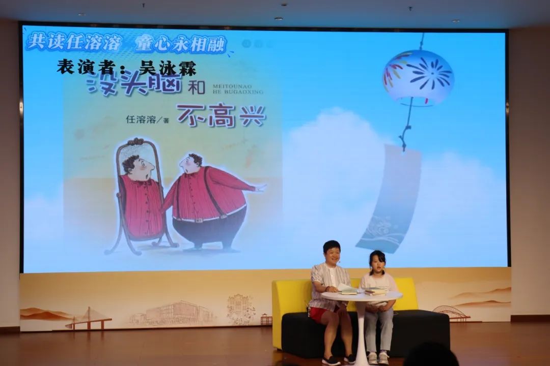 展演现场,16组亲子依次登场,以亲子朗诵、情景演绎等形式,让任溶溶先生的作品绽放新光彩。