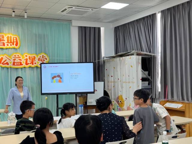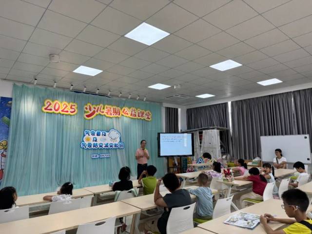 活动伊始,苏老师从“我们身边的气象”入手,用通俗易懂的语言讲解常见气象现象与气象预警信号知识。“我们每天看到的天气预报,其实藏着很多‘密码’,比如晴、阴、雨、雪的天气符号,还有不同颜色的预警信号,它们都在告诉我们未来的天气情况,帮助我们做好准备。”通过 PPT 展示了不同天气符号和气象预警信号(蓝色、黄色、橙色、红色),并且苏老师还结合了暑期常见天气场景进行解读。