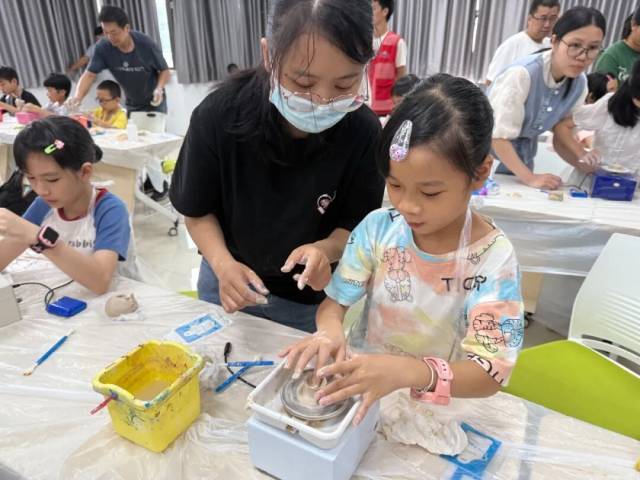 陶艺制作活动中,孩子们与陶土亲密接触,在揉、捏、拉等操作中锻炼了动手能力与创造力,教师的专业指导助力孩子们不断提升作品质量,让孩子们在劳动中收获成就感与希望。