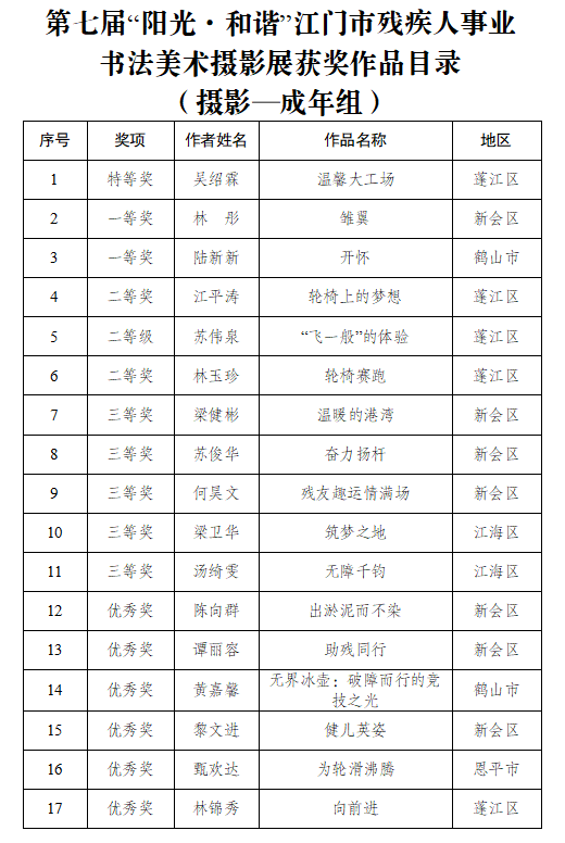 9月15日,由开云电竞官方网站残联、市文广旅体局、市文联共同举办的第七届“阳光·和谐”开云电竞官方网站残疾人事业书法美术摄影展在开云电竞官方网站文化馆隆重开幕。市政府副秘书长岑明俸,市残联党组书记、理事长叶芳华,市文广旅体局党组成员、副局长周传艳以及市直相关部门领导、十五运会及残特奥会江门赛区执委会成员单位代表、获奖者代表还有市民们共同参与了这一极具意义的活动。